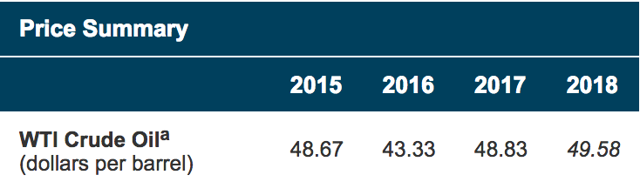 Where do you think the price of crude oil will be in the coming quarters – up, down, or sideways? The US Energy Information Administration (the EIA) sees oil prices continuing to stay at better levels in 2017 and 2018:
