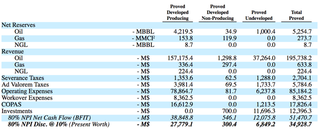 Reserves: On the 2016 annual report, it listed the results of a study done by CG&A, independent petroleum and geological engineers: